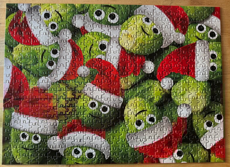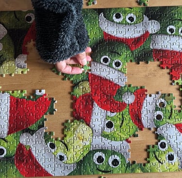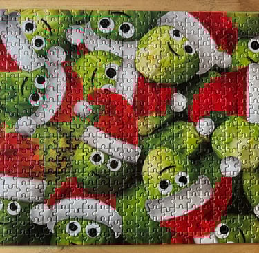 Have you ever tackled a jigsaw puzzle that seemed almost impossible at first glance? Recently, I attempted a puzzle featuring Brussels sprouts wearing Santa hats. It looked fun and festive... dare I say, easy?